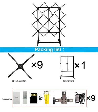 - The 3d holographic fan 3x3 splicing video wall is perfect for use in retail shops, trade shows, exhibitions,