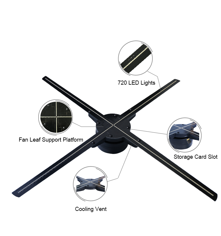 Holographic fan is coming to hit the market! Bored with the traditional advertising way? Try something new to make you different. 3D LED fans are the very new and creative advertising devices to display image in a 3d way. Make your brand noticed with our Holographic fan