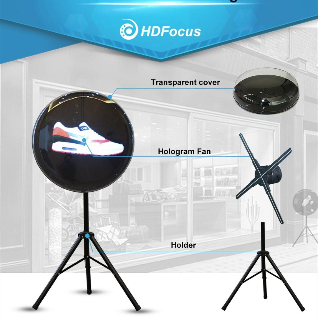 8 Blades WIFI Holographic Wall Display is a pretty new, creative advertising device. It spins to show 3d effect, like the video is floating in the air. You could upload your own content via sd card or App. To start easier, we provide some demo videos for free.