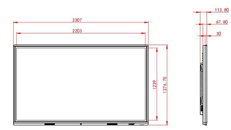 At present, the conventional conference touch all-in-one machine on the market has dimensions of 55 inch, 65 inch, 70 inch, 84 inch, etc. the super large display screen can completely match or even exceed the display screen of the projector. Moreover, the resolution of the LCD screen is very high and the display screen is highly clear, which solves the problem that the projection screen of the projector is not clear.