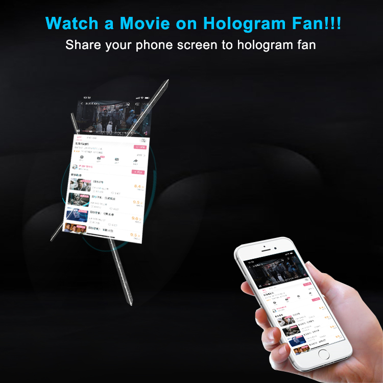 The phone APP is compatible with iOS and Android. Holo50S Hologrm fan Play MP4, AVI, MOV,RMVB, JPG, GIF, JEPG, MKV format video directly, no need convert into bin file. The LED Hologram fan will start to run directly after power on. Do not touch the fan blades while it is running.